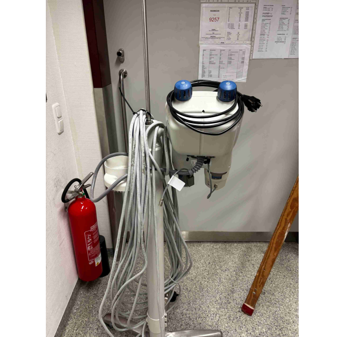 Hochdruckinjektor Spritze mit Doppelkopf, Fahrstativ mit Arm, Refurbished, komplett, voll funktionstüchtig, top Zustand