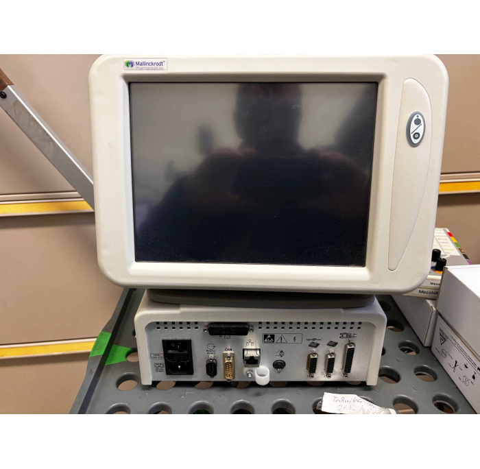 Hochdruckinjektor Spritze mit Doppelkopf, Fahrstativ mit Arm, Refurbished, komplett, voll funktionstüchtig, top Zustand ------ high pressure injector with double head, on portable cart mounted with arm, refurbished, complete fully working, top condition