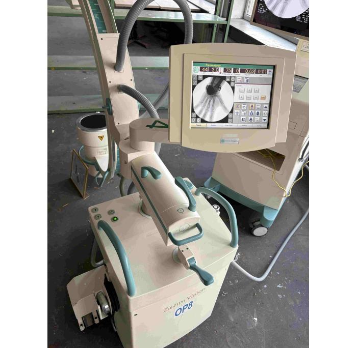 C-Bogen, Durchleuchtungsgerät mit zwei LCD Bildschirmen, 23cm Bv, DICOM, USB, WLAN, Laser, Sony Drucker, mit Cine/DAS/Dose Option, TOP Zustand BJ 2014 ---- yom 2014 c-arm, portable x-ray with two LCD screen monitors, 9" image intensifier, DICOM; USB, WLAN, Laser, with Cine / DSA / Dose Option, TOP Condition