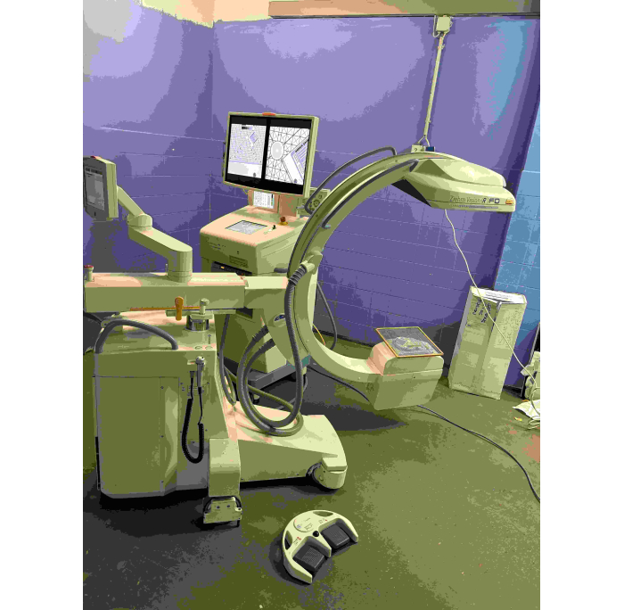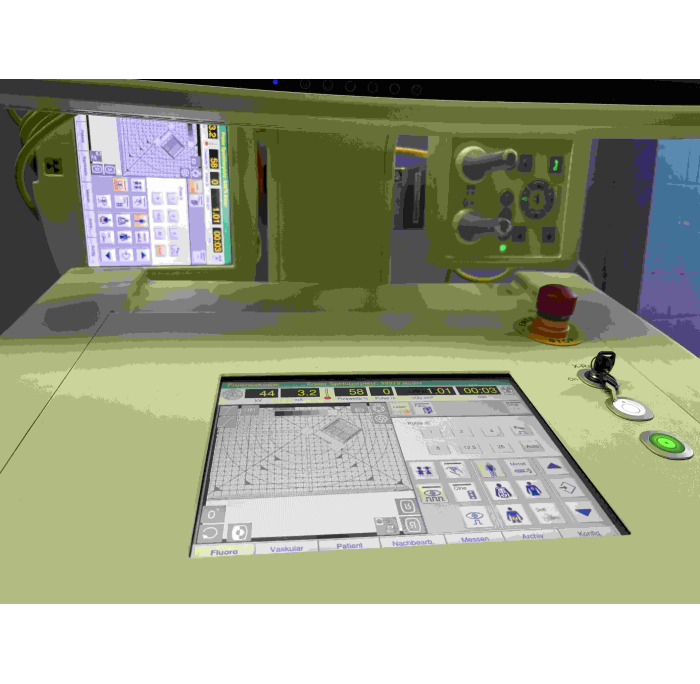 Durchleuchtungsgerät, C-bogen mit digitalen Flachdetector, LCD Doppelmonitor, Optionen Fluoro + Vaskular, kabellosem Fußpedal, DICOM, WLAN, USB, Drucker, Laser, Bildspreicher, 1.6LP Auflösung, alle C-Bewegungen motorisiert steuerbar, mit separatem Bedienpanel und Navigation (zum Anbringen am OP Tisch beispielweise) TOP ZUSTAND----2014