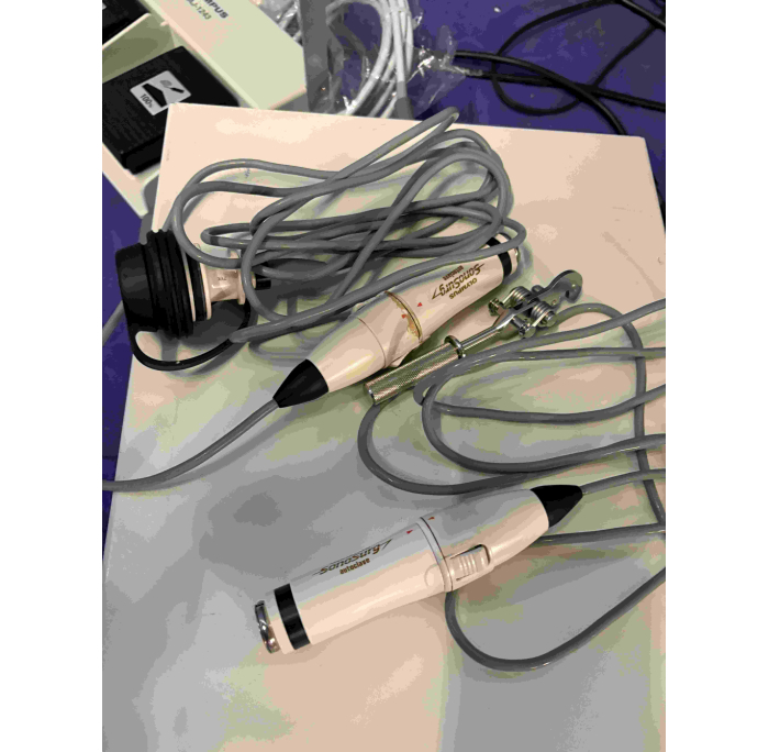 Ultraschallgenerator für Schneiden und Koagulation, mit NEUEM Fußschalter MAJ-1243 und 2x SonoSurg Handstücke, sg. Zst.---ESU system , Ultra sound generator for cutting and coagulation, with NEW foot pedal MAJ-1243 and 2 SonoSurg hand pieces, vg.cond.