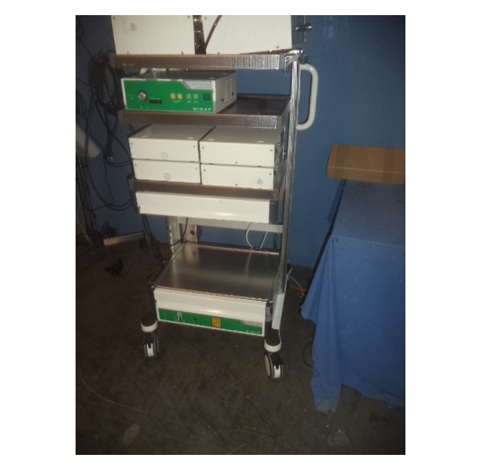 REF 9982 Gerätewagen für Endoskopie mit Trenntrafo, zwei Schubläden, 4 Abstellflächen, sg.Zst.