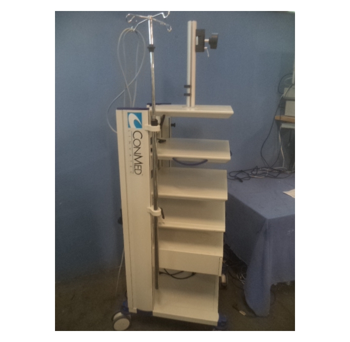 Gerätewagen für Endoskopie mit LCD Monitorhalterung, Sicherheitstrenntrafo, 6 Ablagen, 1 Schubladen, 1x Tastaturschublade, sg.Zst---BJ/yom2009