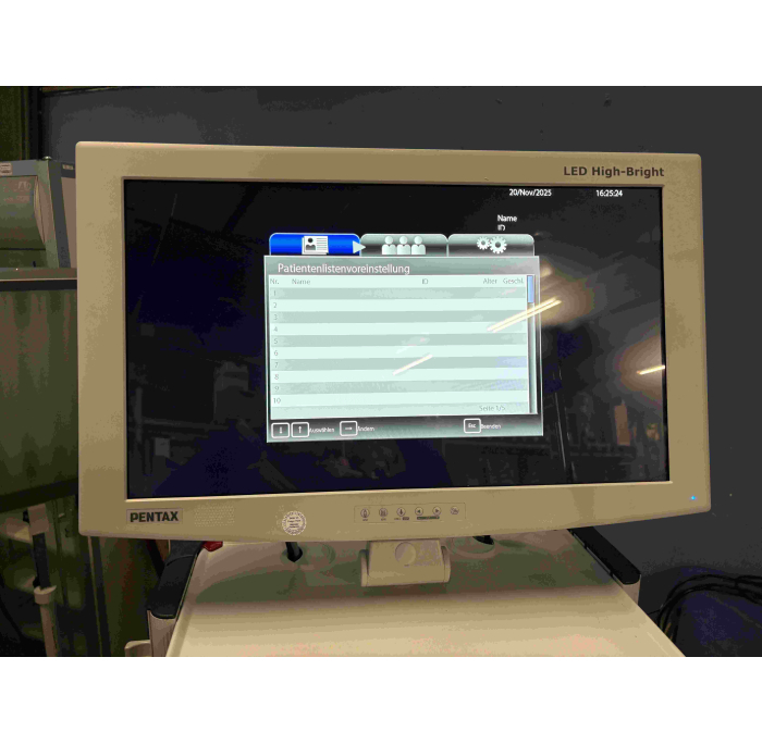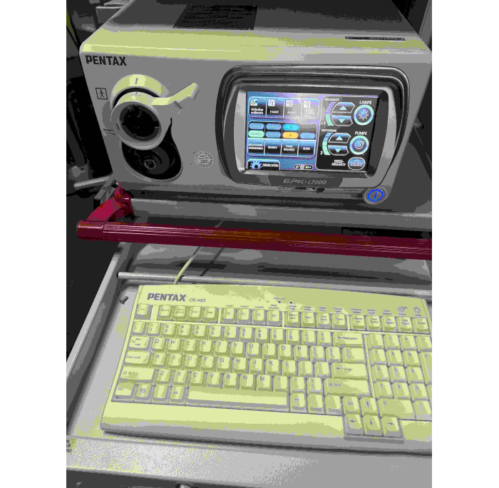 Video Endoskopie Prozessor mit OS-A83 Tastatur, Gerätewagen mit Schubladen, Trenntrafo, PENTAX 26" LED Monitor, Endoskophalter, etc. alles in Top Zustand - passende Endoskope auf Anfrage