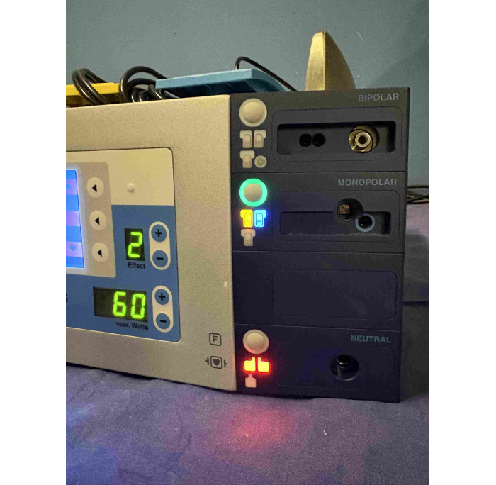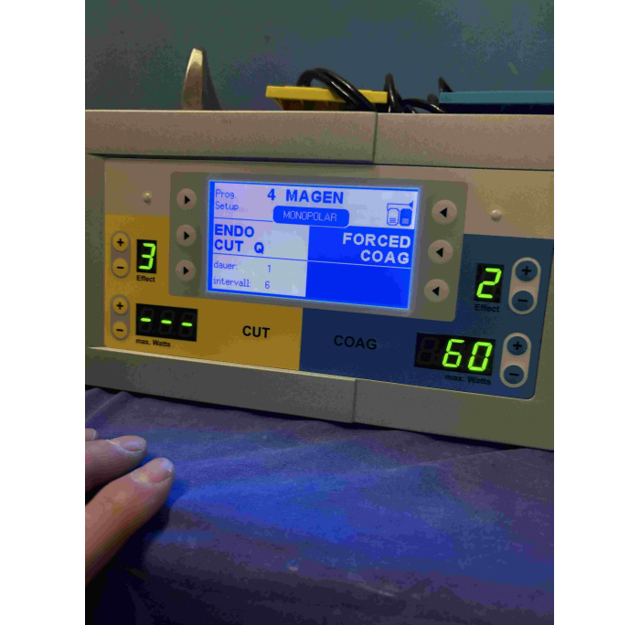 HF Chirurgiegeräte mit Endo Cut Funktionen, Fußpedal 20189-300, Ableitungen, Top Zustand REF 10140-400---2017----ESU Surgery unit with Endo Cut functions, foot pedal 20189-300, all cables, top condition REF 10140-400