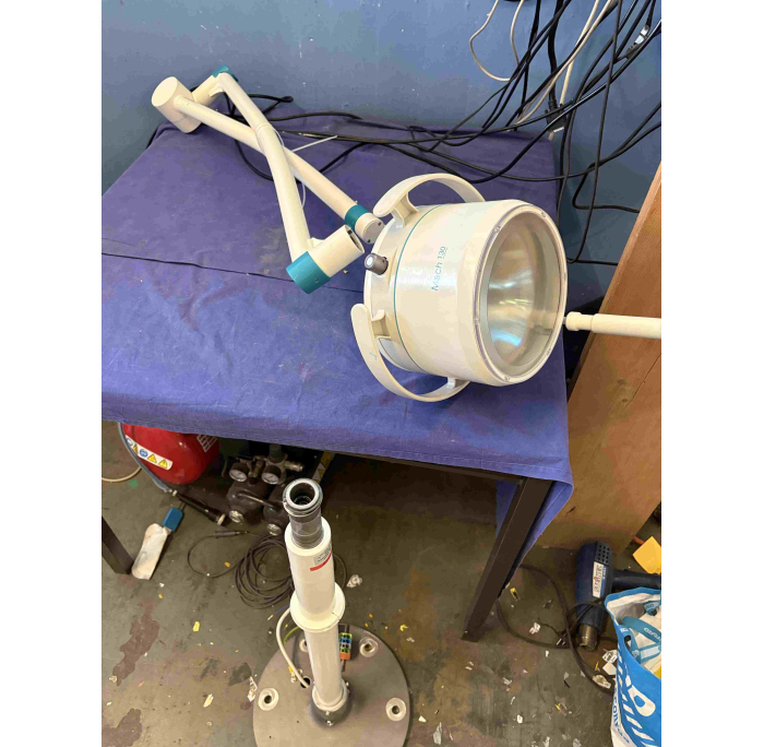 Untersuchungslampe für Decken und Wandbefestigung, komplett mit Trafo für 22,8V , sehr guter Zustand, typ 1302103000 --- examination lamp for ceiling and wall mounting, complete with transformer for 22,8V, very good condition, typ 1302103000