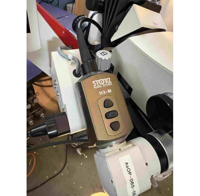Surgical microscope with two viewers, TYPE 10448044, STORZ Image1 H3-M camera, ULT 500, M520, halogen and xenon light source, vg. Cond.