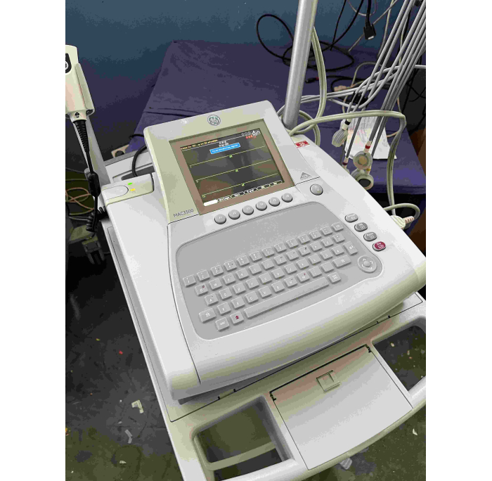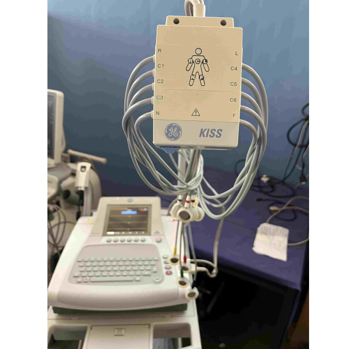 EKG Gerät mit 12 Kanal mit Patientenableitung, mit Kiss Saugelektroden, ohne Sauganlage, sg. Zst. Mit Wagen----2013 2014 2016----ECG writer with 12 chanel, with patient cable, with KISS suction electrodes, without suction device, vg.cond with trolley.