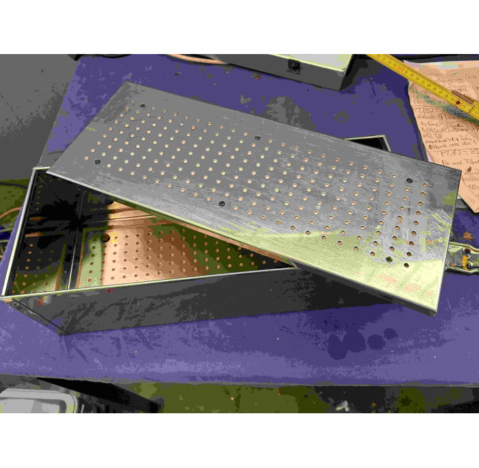Edelstahl mit gelochtem Boden und Deckel, ca. 405x160x120mm, sg.Zst.