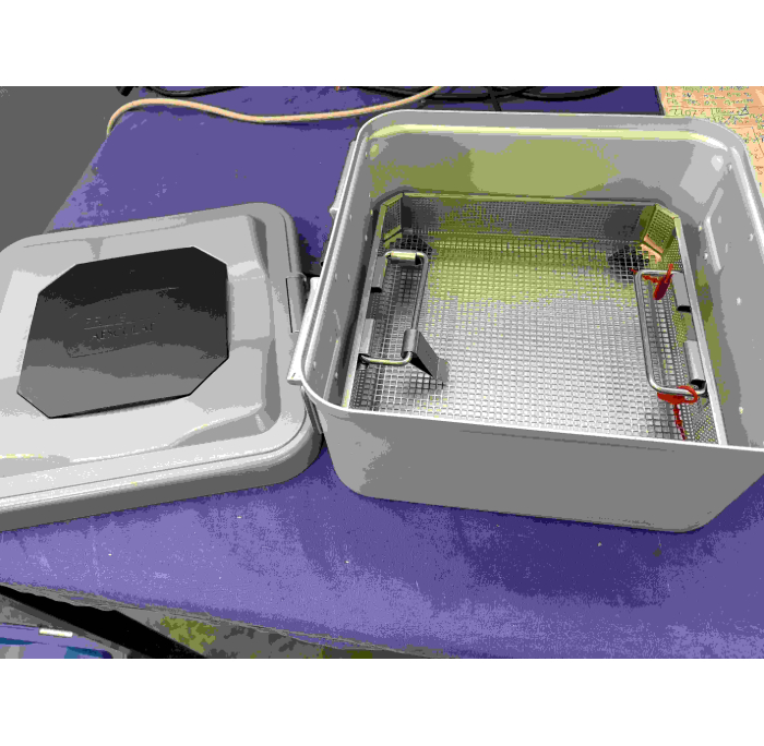 Sterilgut Container mit ca. 27x27x15cm inkl. belüfteten Deckel und Siebkorb, neuwertig