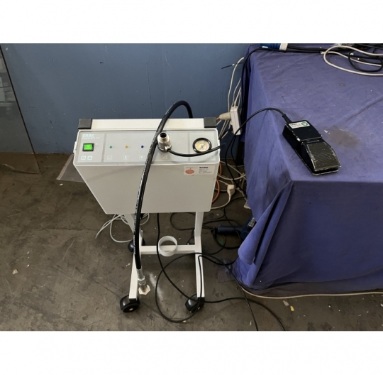 Kryogerät mit Wagen, Gasflasche, Fußschalter 20711-008 und Sonde 20416-037, Top Zustand --- Cryo device with cart, gas bottle, foot pedal 20711-008 and probe 20416-037, Top condition